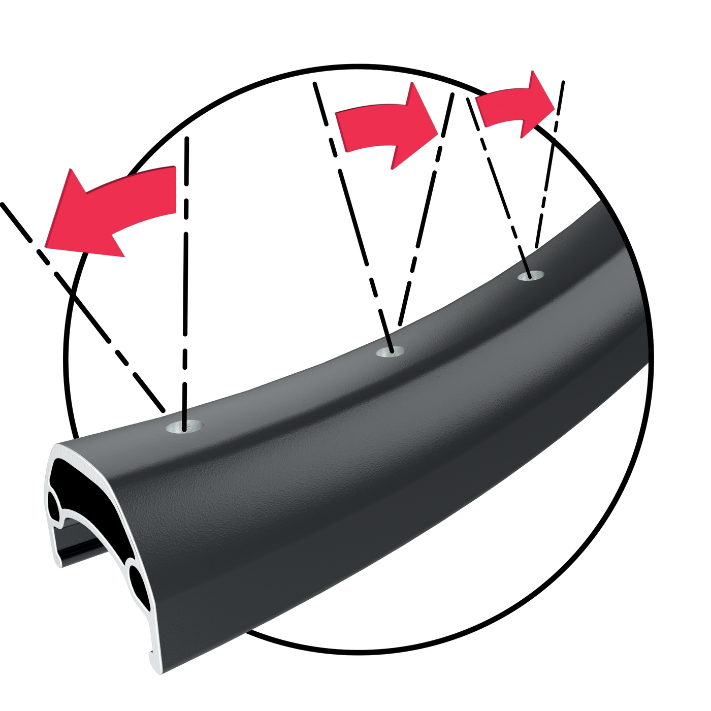 Perforación en línea, adecuada para perfiles altos y llantas estrechas.